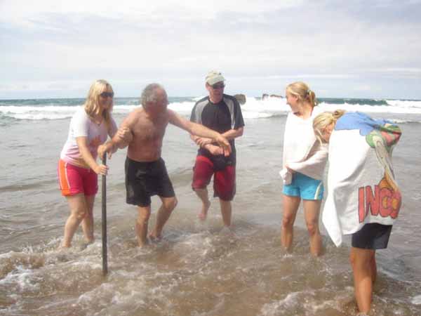 The day started off early for John, Lyndas husband, and Bryce, Jos father. They were up at the crack of dawn getting the spit roast ready to cook the lamb.