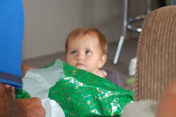 When everyone is present the serious task of distributing the gifts gets underway. The eldest grandchild, Jorja, is given the task of handing them out, in between opening her own.