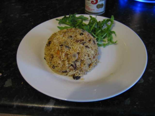 I prepared the couscous by adding 150mls of boiling mushroom stock (well, water from soaking some porchini mushrooms from the night before). This I left to cool for later on.